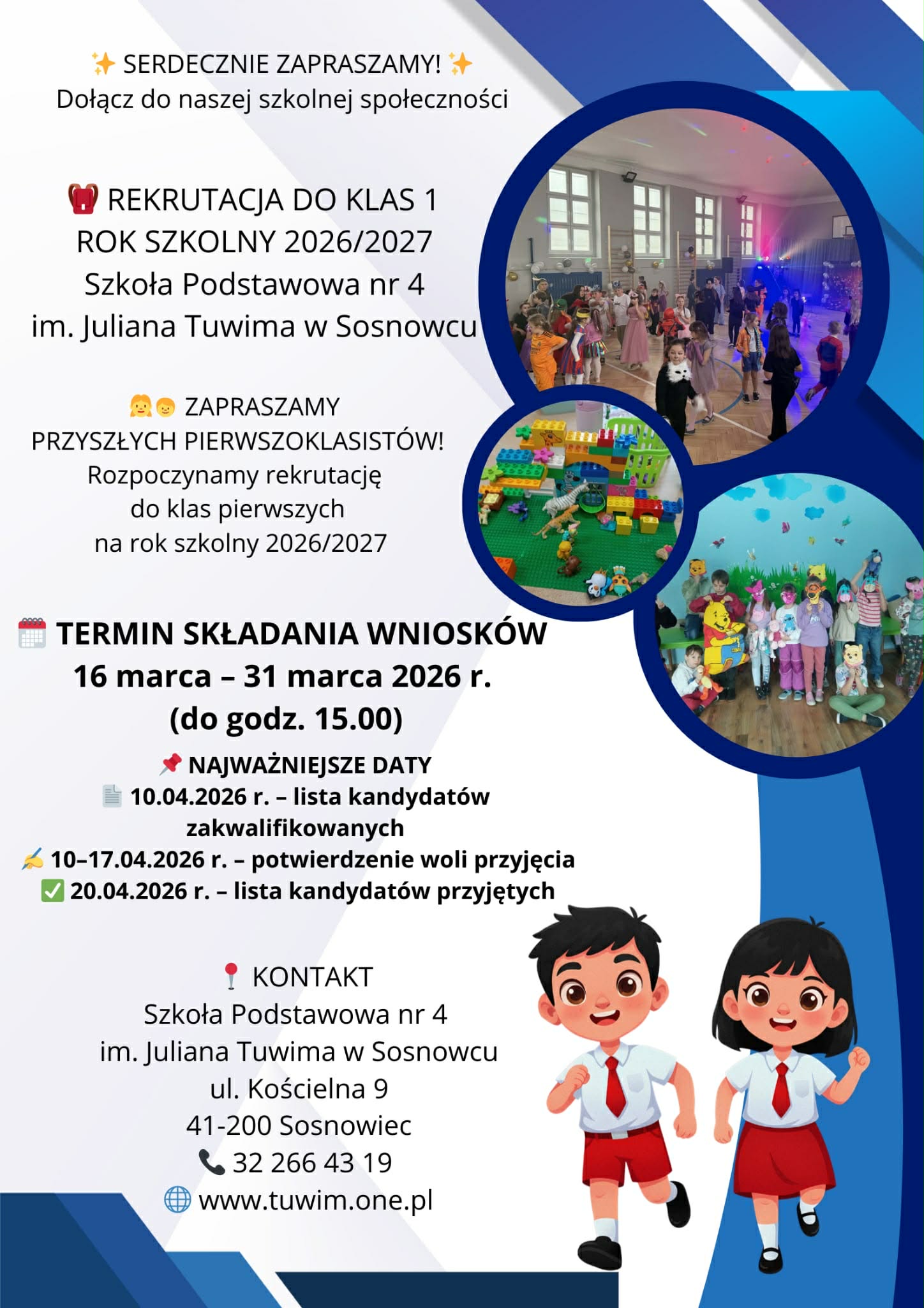 Szanowni Rodzice, informujemy, że rozpoczyna się rekrutacja do klas pierwszych szkoły podstawowej na rok szkolny 2026/2027.