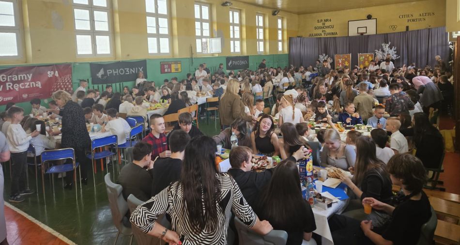 16 kwietnia w naszej szkole odbyło się tradycyjne śniadanie wielkanocne. Nie zabrakło dzielenia się jajeczkiem, stołów pełnych świątecznych przysmaków, radości i gwary z przeżywania świąt. Na początku Pani Dyrektor złożyła wszystkim życzenia świąteczne a potem delektowaliśmy się przyniesionymi przez rodziców smakołykami.