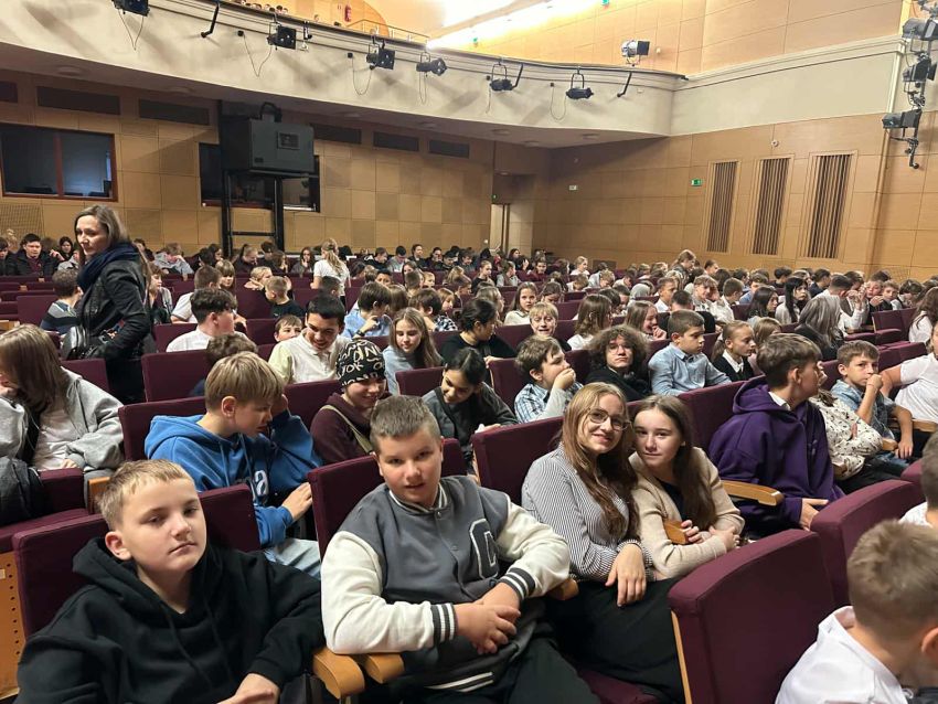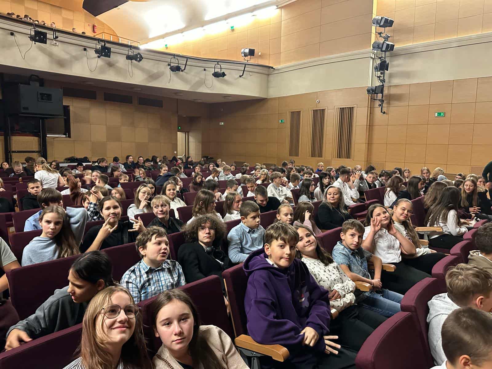 Uczniowie klas 6 i 7 wybrali się do sosnowieckiej "Muzy" na spektakl pt.: „Teatr vs. Film. Pojedynek sztuk” w wykonaniu Poznańskiego Teatru Aktora. Przedstawienie w zabawny, ale i refleksyjny sposób ukazało różnice oraz podobieństwa między dwiema dziedzinami sztuki – teatrem i filmem. Aktorzy z ogromną energią i humorem wciągnęli publiczność w opowieść o kulisach obu światów, pokazując, jak wielką moc mają słowo, gest i obraz. W trakcie spektaklu nie zabrakło odniesień do znanych dzieł literackich i filmowych, m.in. „Hamleta”, „Romea i Julii”, „Opowieści z Narnii”, „Harry’ego Pottera” czy „Władcy Pierścieni”. Dzięki temu młodzi widzowie mogli spojrzeć na klasykę literatury z zupełnie nowej perspektywy. To teatralne spotkanie okazało się nie tylko świetną rozrywką, ale również inspirującą lekcją o sztuce, wyobraźni i różnych sposobach opowiadania historii.
