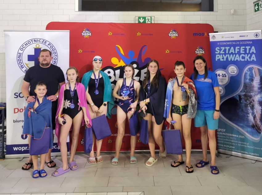 Mamy to Naszą mała cegiełka została dołożona w VI Sosnowieckiej 24godzinnej sztafecie pływackiej. Wspólnymi siłami Lena, Ala, Zuzia, Ala, Kuba i Antek przepłynęli 21 km 300m - to jest 426 długości basenu. Dziękujemy i widzimy się ponownie za rok
