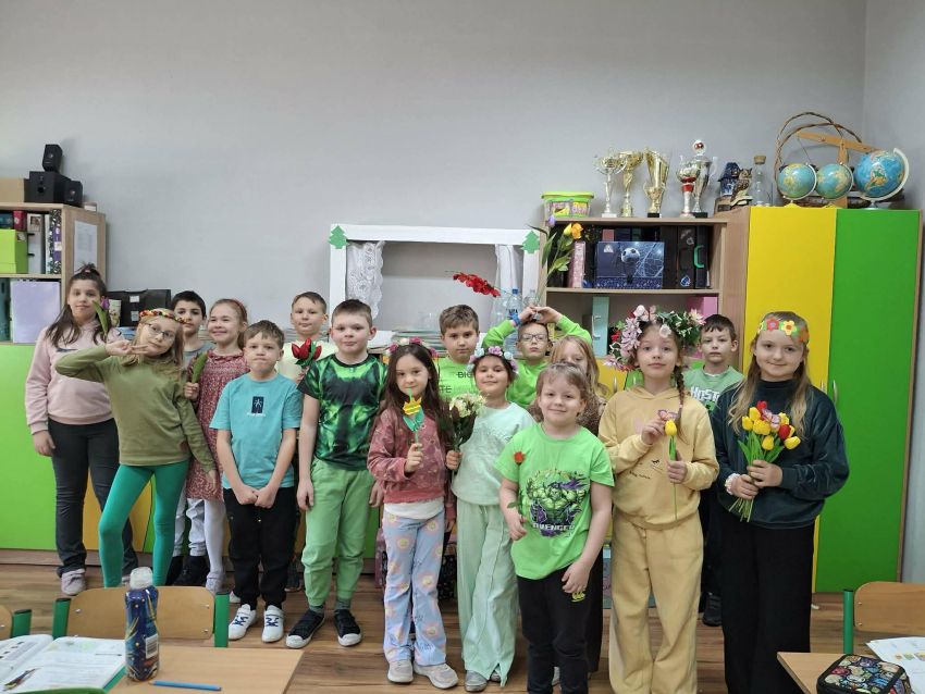 W naszej szkole odbył się wyjątkowy dzień. Z okazji powitania wiosny uczniowie przyszli ubrani na zielono lub w kwieciste stroje, aby podkreślić wiosenny nastrój. Wiele osób miało także wianki z kwiatów i zielone dodatki. Ten dzień był bardzo udany i wszystkim dopisywał dobry humor, ponieważ w ten sposób pożegnaliśmy zimę i przywitaliśmy wiosnę.