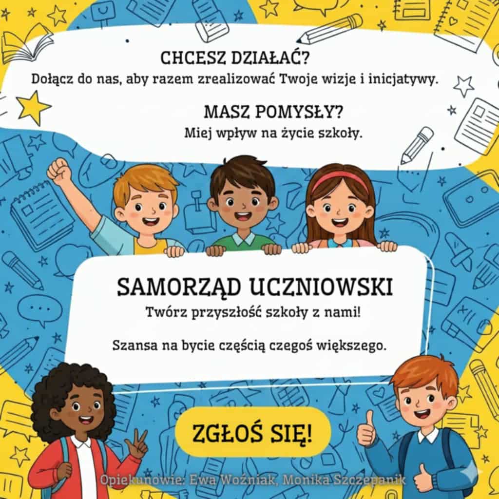 Wszystkich, którzy chcą zgłosić swoją kandydaturę do Samorządu Uczniowskiego zapraszamy do kontaktu z Panią Ewą Woźniak lub Moniką Szczepanik.