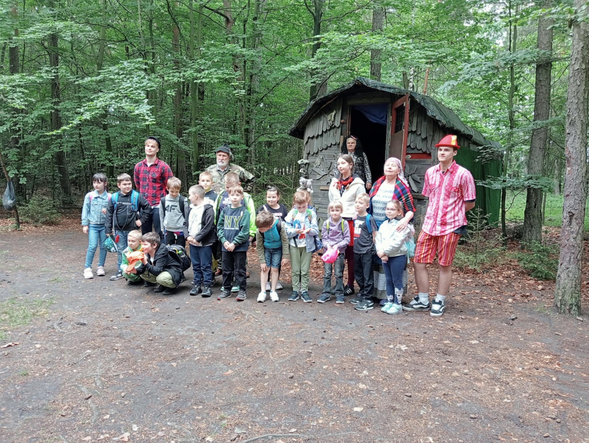 Do Zaczarowanego Lasu zawiozły nas wygodne i bezpieczne "tramwaje konne", znane na szlaku Jurajskiej Karawany Konnej. Po drodze odwiedziliśmy Dom Baby Jagi, rozmawialiśmy z Jasiem i Małgosią, a wszystko to w prawdziwej leśnej scenerii, gdzie można zobaczyć niedźwiedzia, usłyszeć wycie wilka, a być może również dostać ciasteczko od Czerwonego Kapturka. Koło "Chaty za Wsią" czekały nas pyszne kiełbaski i herbatka. To była wspaniała, baśniowa przygoda.